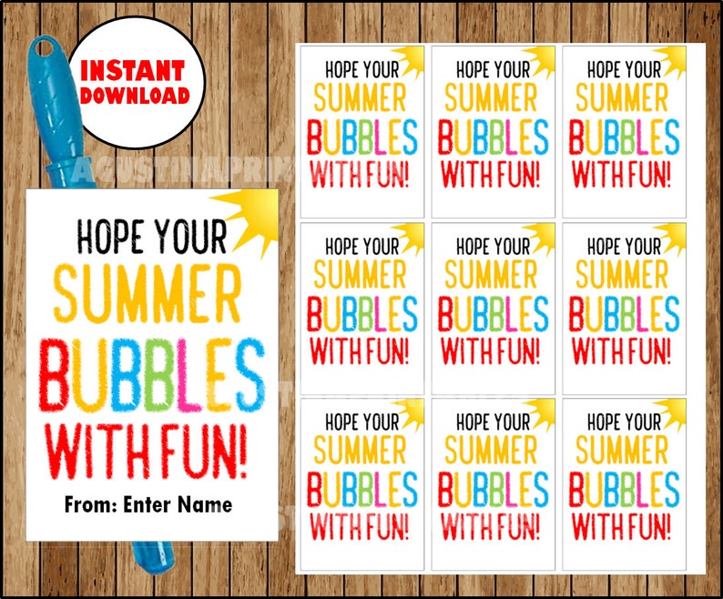 End of Year Gift: Bubbles with FREE Printable - Moms Without Answers We found these bubbles at the dollar store for 6 for $1. You could also do a fun bubble wand for older kids. I created different tags so the girls can "personalize" them for their friends. We just hole punched each of our tags and tied them to our bubbles with curly ribbon.