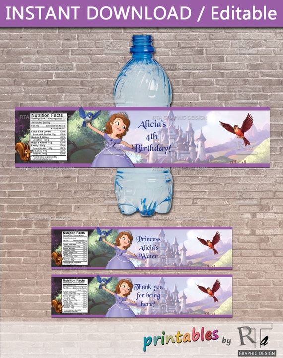 Sofia Bottle Label | Etsy Sofia the First // Custom Water Bottle Labels // Bottle Wraps // Water Resistant // Personalized // Printed & Shipped WoodsDesignStudio (2,296) $12.75 Wildflower 1.st Birthday water bottles labels, Printable Water Bottle Label, 1st Birthday water bottles, First Birthday Water Labels #SOFIA SunriseWisdomPrint (698) $3.72 $4.65 (20% off)