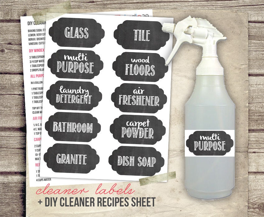 Printable Cleaning Labels | Free printable cleaning, Homemade cleaning ... Download these free printable cleaning labels from Elegance and Enchantment and keep your spray bottles organized, and looking pretty. Includes 8 designs with one customizable label! Find this Pin and more on Pretty Printables by Elegance and Enchantment | Enchanted Prints Stationery. More like this Homemade Cleaning Supplies Cleaning Recipes